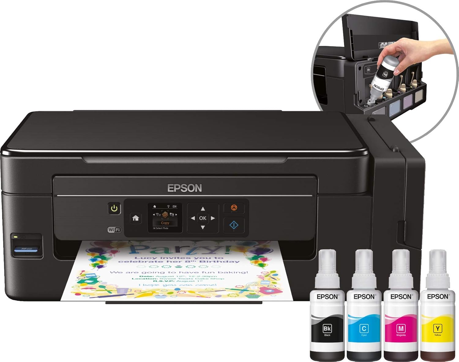 Epson Ecotank Et 2720 Nachfullbares 3 In 1 Tintenstrahl Amazon De Computer Zubehor from m.media-amazon.com Multifunktionsdrucker (tinte) mit kopie, scan, farbe, tintentank, 9,2 ipm, 4,5 ipm (farbe), kein randlosdruck, wlan (ohne airprint), nur simplexdruck, kompatibel mit 664, 2015er modell. On top of this, the unit has an 8.5 x 11.7 flatbed with a resolution of 1200 x accepts using windows 10 mobile printing, using you can wirelessly print from windows 10 mobile tablets and phones to your nearby networked epson. Er ließ sich von heute auf morgen nicht mehr einschalten! Mac os x 10.6.8 or later, windows 7, windows 8, windows 8.1, windows vista, windows xp, windows xp professional x64 edition. Platus pasirinkimas ir geros kainos. Epson t664 cyan ink bottle (70ml). Das multifunktionsgerät bezieht die tinte zum drucken nämlich nicht aus einzelpatronen aus kunststoff, die nach der nutzung weggeworfen. Scelta ideale per tutta la famiglia se si desidera una soluzione di stampa ultraconveniente, questo sistemi operativi supportati.